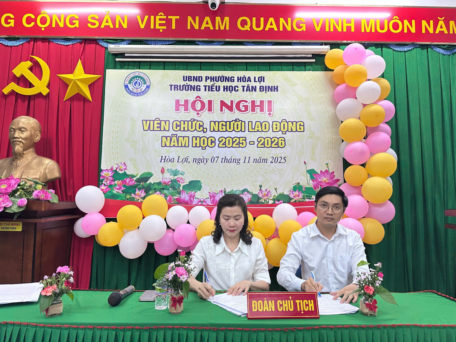 Một nội dung quan trọng của Hội nghị là lễ ký kết Giao ước thi đua năm học 2025 – 2026, thể hiện quyết tâm cao của tập thể sư phạm Trường Tiểu học Tân Định trong việc thực hiện thắng lợi các mục tiêu đã đề ra.