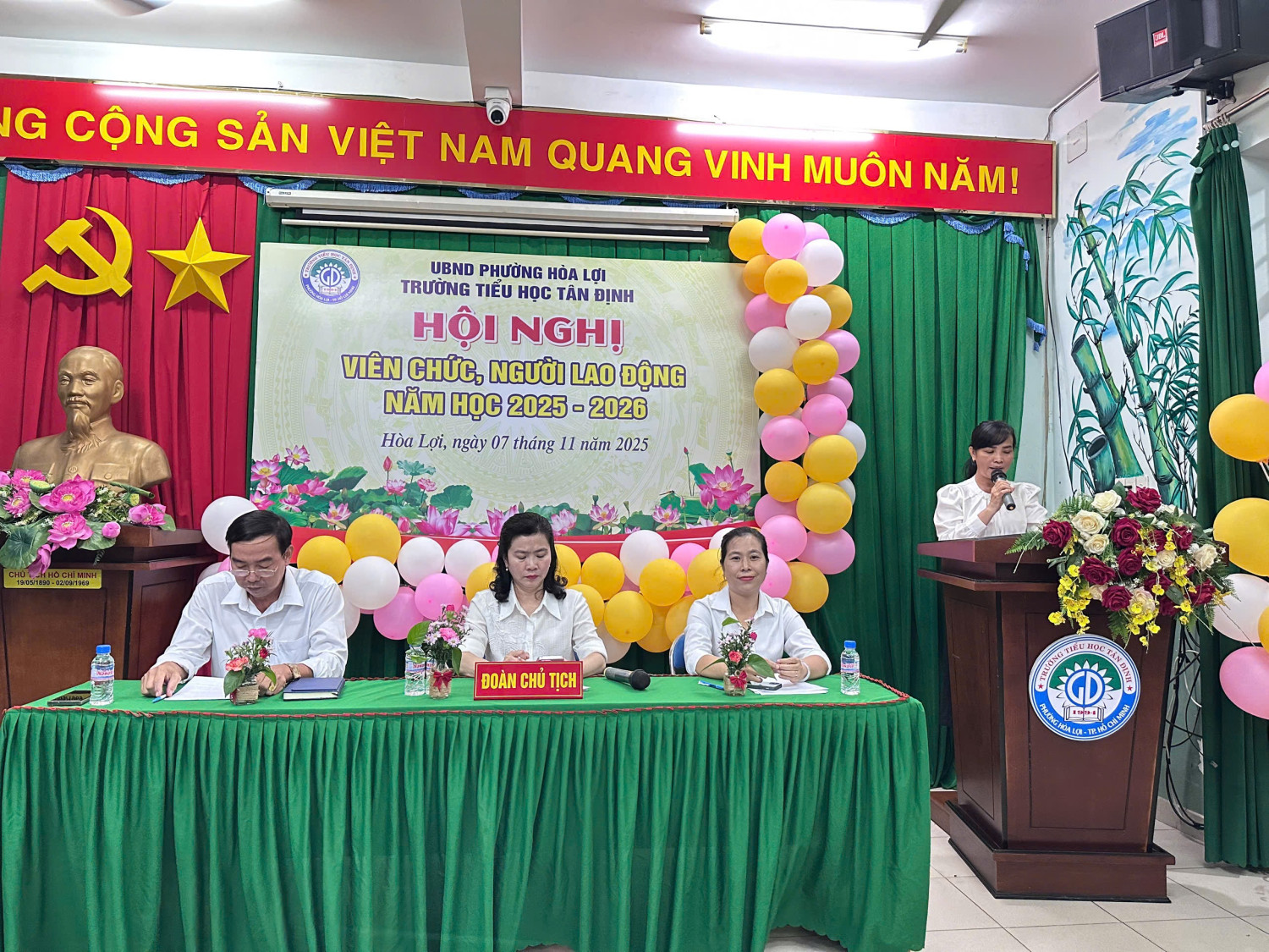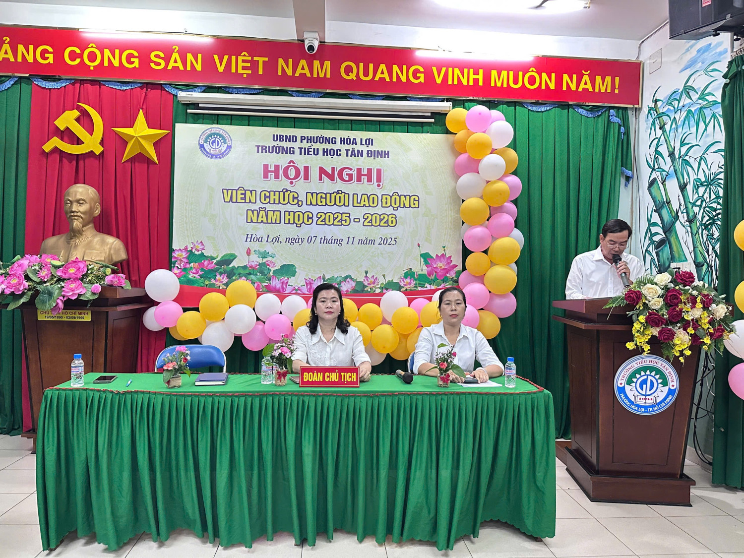 Chiều ngày 07 tháng 11 năm 2025 vào lúc 17 giờ, Trường Tiểu học Tân Định long trọng tổ chức Hội nghị viên chức, người lao động năm học 2025 – 2026.Đây là hoạt động thường niên có ý nghĩa quan trọng, nhằm đánh giá kết quả thực hiện nhiệm vụ năm học 2024 – 2025, đồng thời xây dựng phương hướng, mục tiêu và giải pháp cho năm học mới.