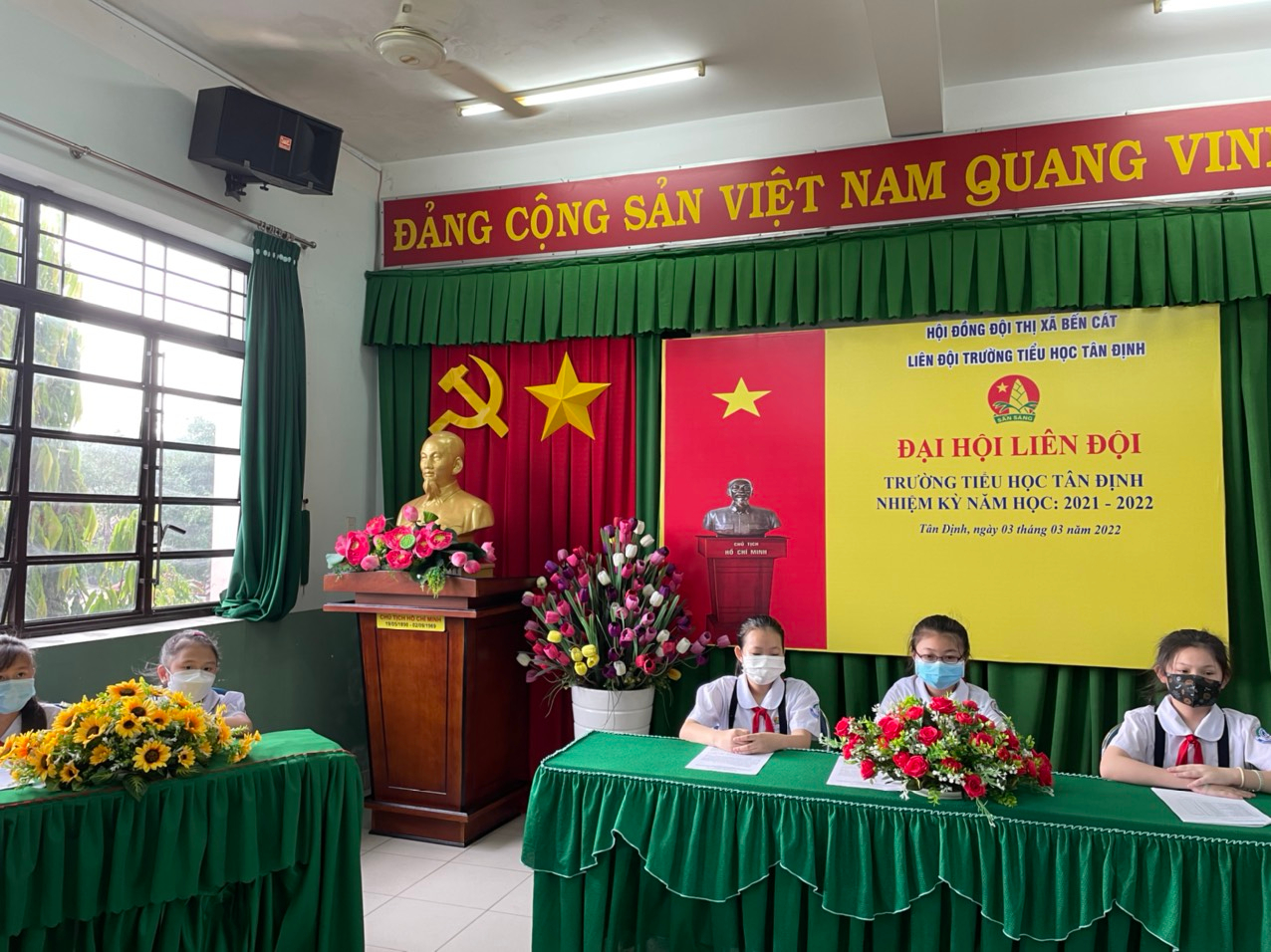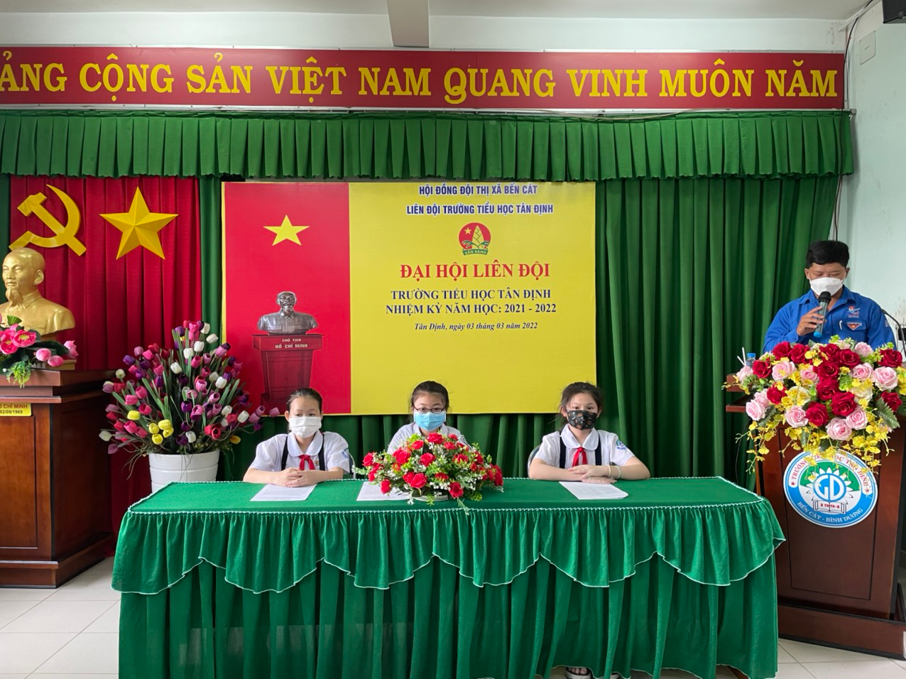 Thực hiện hướng dẫn của Hội đồng Đội thị xã Bến Cát, sự quan tâm, chỉ đạo của Chi bộ, Ban giám hiệu nhà trường. Với mục đích giúp các em đội viên hiểu được Nghị quyết Đại hội, cụ thể hóa Nghị quyết thành những việc làm thiết thực, xây dựng tổ chức Đội TNTP Hồ Chí Minh vững mạnh về tư tưởng chính trị, tổ chức và hành động, góp phần thực hiện thắng lợi nhiệm vụ chương trình công tác năm học. Liên đội trường Tiểu học Tân Định đã xây dựng kế hoạch và tổ chức thành công Đại hội Liên Đội năm học 2021 - 2022.