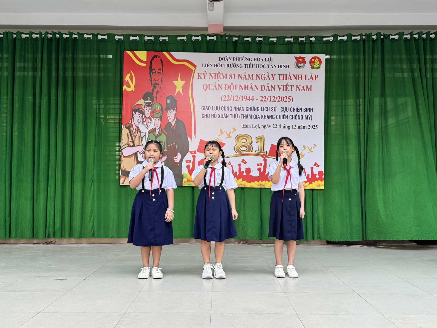 Bên cạnh đó, các em học sinh còn được giao lưu với cựu chiến binh, lắng nghe những câu chuyện chân thực, xúc động về quá trình chiến đấu, hy sinh và bảo vệ Tổ quốc của các thế hệ cha anh. Qua những lời kể giản dị nhưng giàu giá trị lịch sử, học sinh thêm hiểu và trân trọng truyền thống cách mạng vẻ vang của dân tộc Việt Nam.