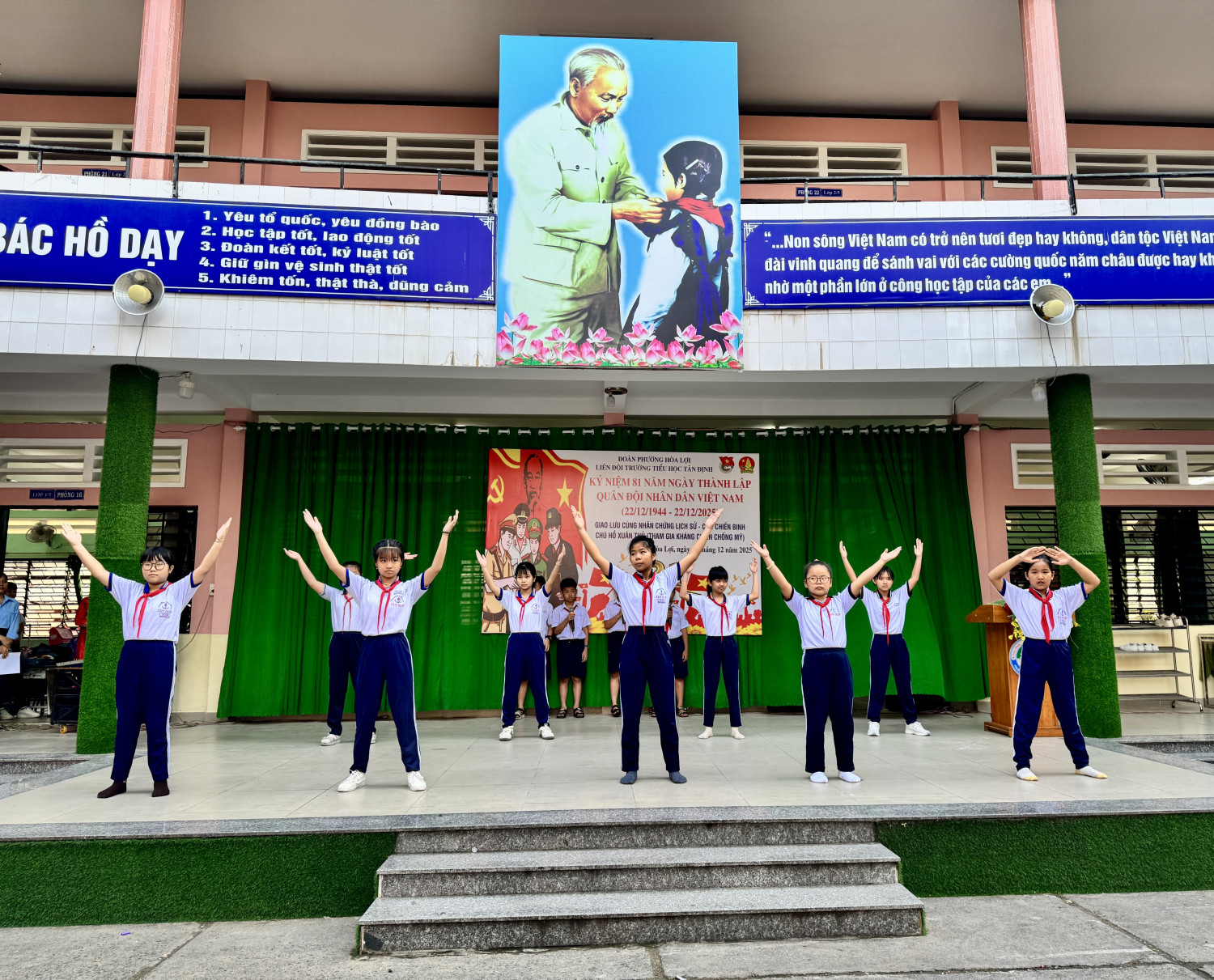 Chương trình diễn ra trong không khí trang trọng, ấm áp và giàu ý nghĩa với nhiều tiết mục văn nghệ chào mừng do học sinh biểu diễn. Các ca khúc, điệu múa ca ngợi Đảng quang vinh, Bác Hồ kính yêu, quê hương đất nước và hình ảnh người lính Cụ Hồ đã để lại nhiều cảm xúc sâu sắc, góp phần khơi dậy niềm tự hào dân tộc trong mỗi học sinh.